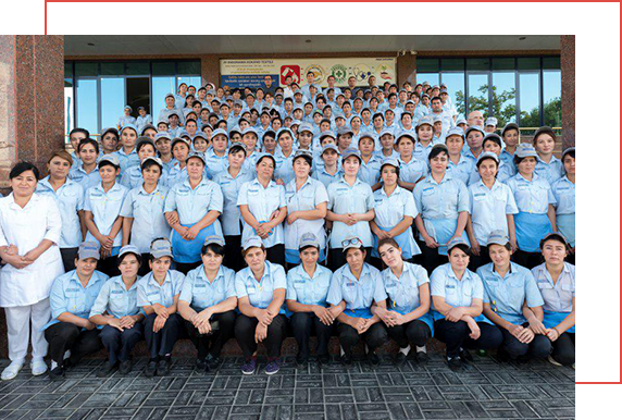 Заводда замонавий ускуналар билан жиҳозланган ошхона мавжуд бўлиб, ходимларни халқаро стандартларга мувофиқ тўла қимматли овқат билан таъминлайди.